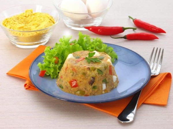 - Por fim, desenforme e sirva seu cuscuz paulista acompanhado de salada de folhas