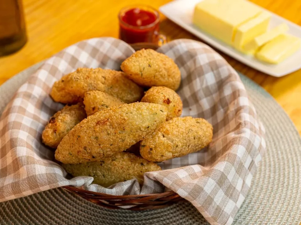 Bolinho de aipim (tubérculo também conhecido como macaxeira e mandioca) é uma delícia que os brasileiros amam! Ele pode ser com ou sem recheio, e a massa pode ser feita de formas diferentes. O nosso bolinho de aipim recheado com salame e queijo prato tem massa sem farinha de trigo; leva somente aipim cozido, manteiga, salsinha e sal e é fácil de fazer.