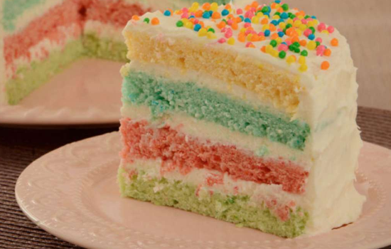 - Em um prato, intercale camadas de bolo e de creme, terminando em creme e cobrindo a superfície e lateral do bolo. - Decore com confeitos e leve à geladeira por 2 horas antes de servir.