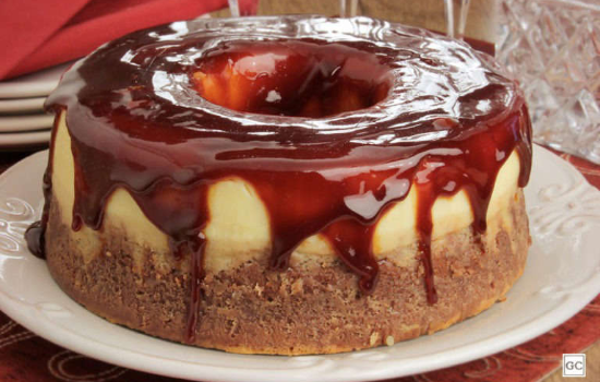 - Desenforme o bolo-pudim e regue com a ganache. Sirva.