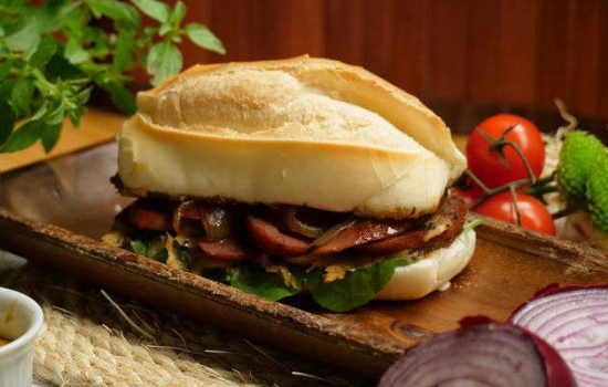 O sanduíche de linguiça calabresa é bem completo e um ótimo lanche para quando bater a fome no meio da folia.