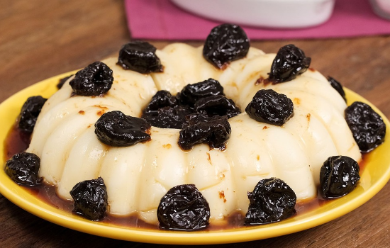 5. Desenforme, regue com a calda de ameixa e sirva e seguida.