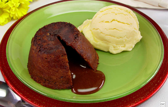 - Retire, aguarde 2 minutos e desenforme diretamente sobre o prato de sobremesa.