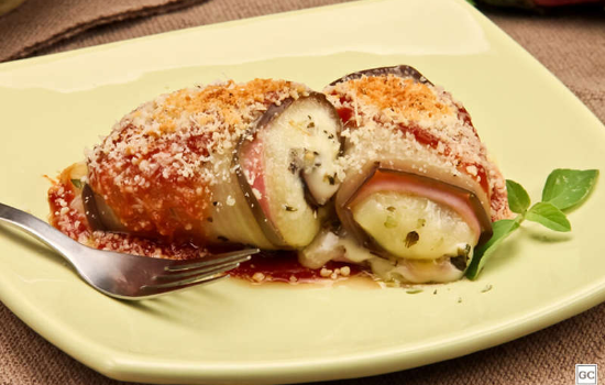 Enroladinho de berinjela com presunto e queijo | Foto: Guia da Cozinha