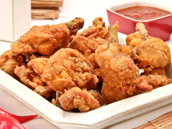 - Em seguida, passe os pedaços de frango pela farinha de trigo e frite em óleo quente.
