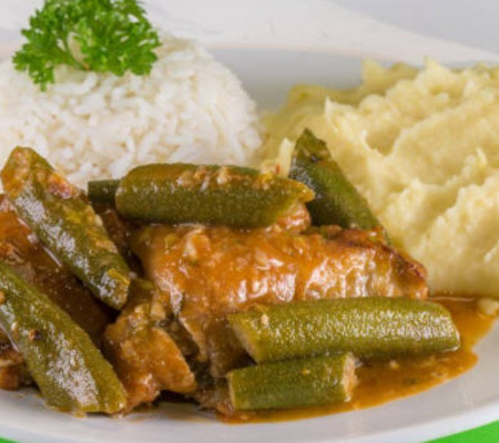 - Adicione o molho de tomate, o caldo de legumes e os pedaços de frango, deixe cozinhar por 30 minutos em fogo médio e finalize com o quiabo.