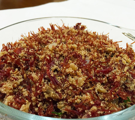 250 grs. Panceta sem pele frita e cortada em pedaços pequenos.