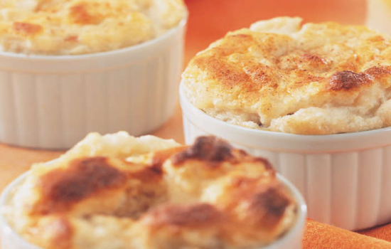 - Incorpore-as delicadamente à mistura de arroz e distribua-a em 6 ramequins de 200 ml ou numa forma de suflê com capacidade para 1,2 litro.