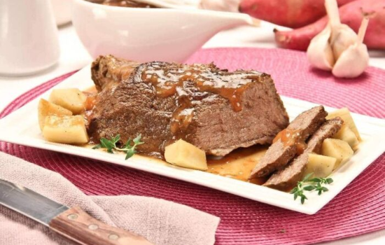 - Abra panela, transfira a carne e a batata-doce para uma travessa e sirva regado com o caldo do cozimento.