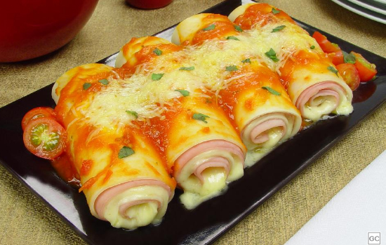 - Enrole como rocamboles e coloque, lado a lado, em um refratário grande untado.