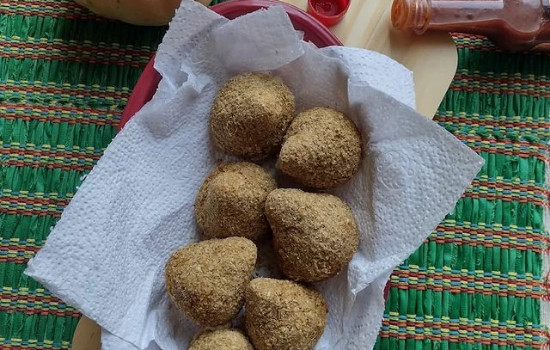 - Empane elas passando nos ovos e finalizando na farinha de linhaça.