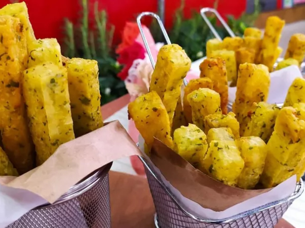 Os palitos fritos de mandioca são sugestão para servir como acompanhamento de uma refeição ou petisco de uma reunião com amigos ou em família. Para fazê-los, você só vai precisar de aipim, sal, salsinha, alho picado e óleo para fritar. Essa quantidade de ingrediente rende 50 unidades, cerca de 750 gramas.