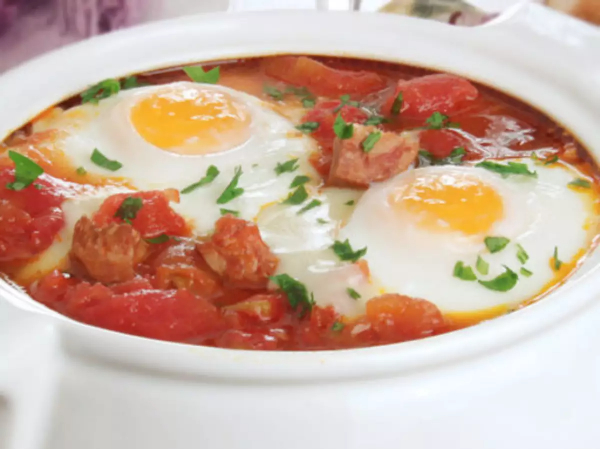 - Faça uma pequena cova no centro da sopa e quebre um ovo com cuidado em cada cumbuca.