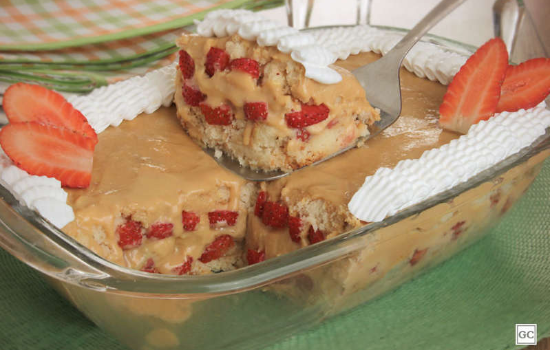 - 1 e 1/2 xícara (chá) de doce de leite cremoso