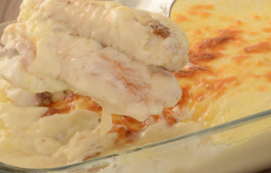 Peixe gratinado ao molho de queijos