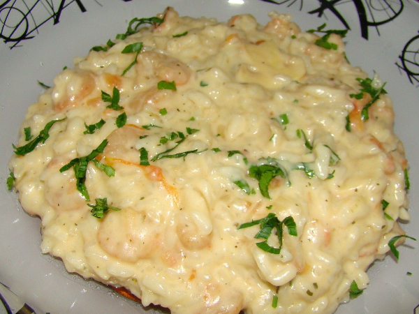 - Após cozinhar, faça um buraco no meio do arroz, coloque o restante da manteiga e o queijo parmesão e mexa até incorporar.