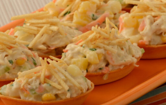 - Distribua entre as barquinhas, polvilhe com batata palha e sirva.