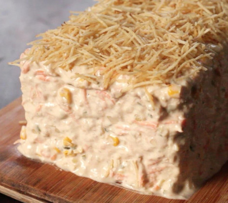 6. Com uma espátula, cubra as laterais e o topo da torta com o restante da maionese, alisando bem. Leve à geladeira para firmar.