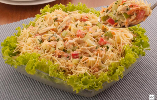 - Acrescente o frango, o salsão, o tomate, a cenoura, a maçã, a cebola e misture.