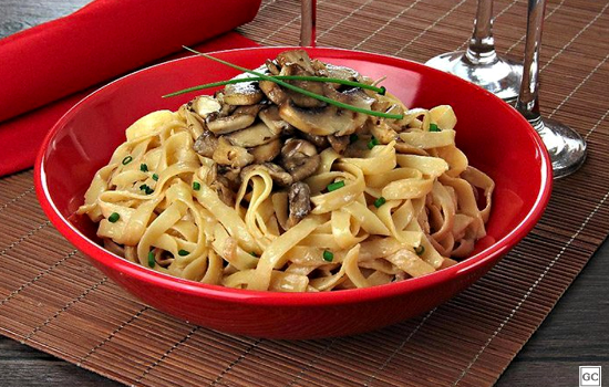 - Acrescente os cogumelos e frite em fogo alto por 3 minutos.