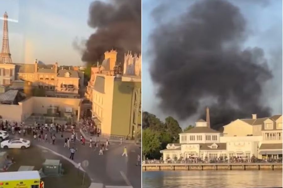 O fogo assustou visitantes no “bairro parisiense” do parque, mas ninguém ficou ferido; causas ainda estão sob investigação.